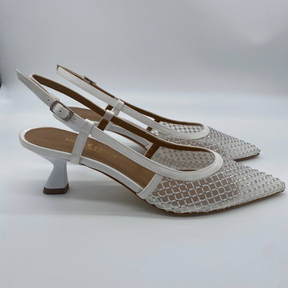 Chanel rete bianca. Chanel realizzata in morbida rete con Swarovski crystal offre un confort impareggiabile. Il tacco 50 a rocchetto assicura una maggiore stabilità e comodità, la sua linea molto sfilata valorizza la silhouette.