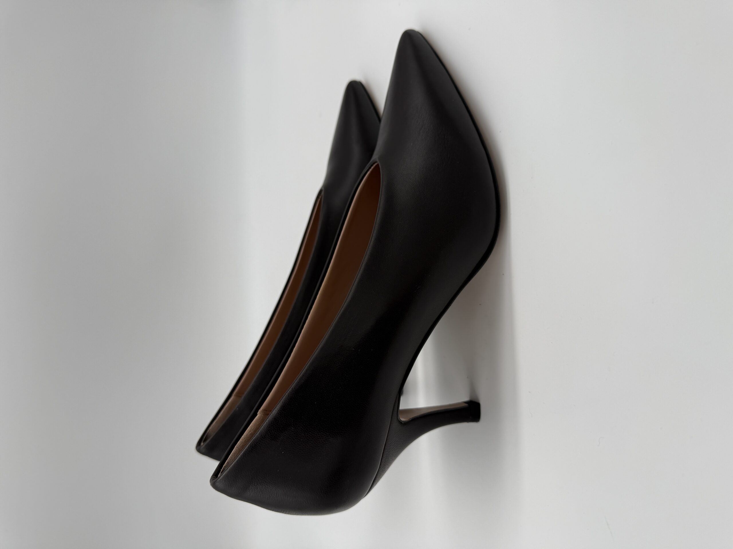 Décolleté testa di moro tacco 70. Décolleté realizzato in pelle testa di moro con scollo a V per uno slancio maggiore alla figura. Il tacco 50 a rocchetto assicura stabilità e comodità, la sua linea molto sfilata valorizza la silhouette.