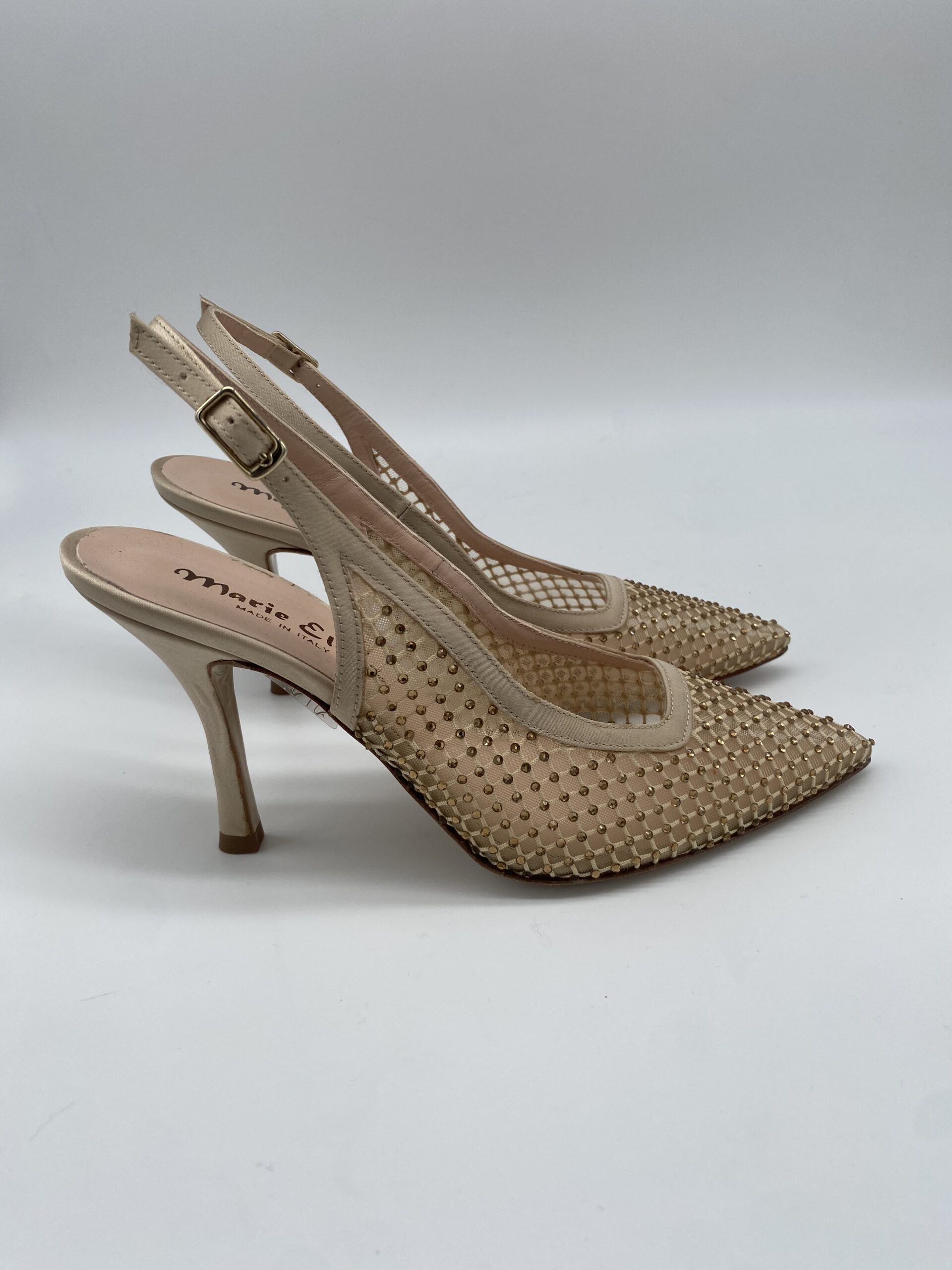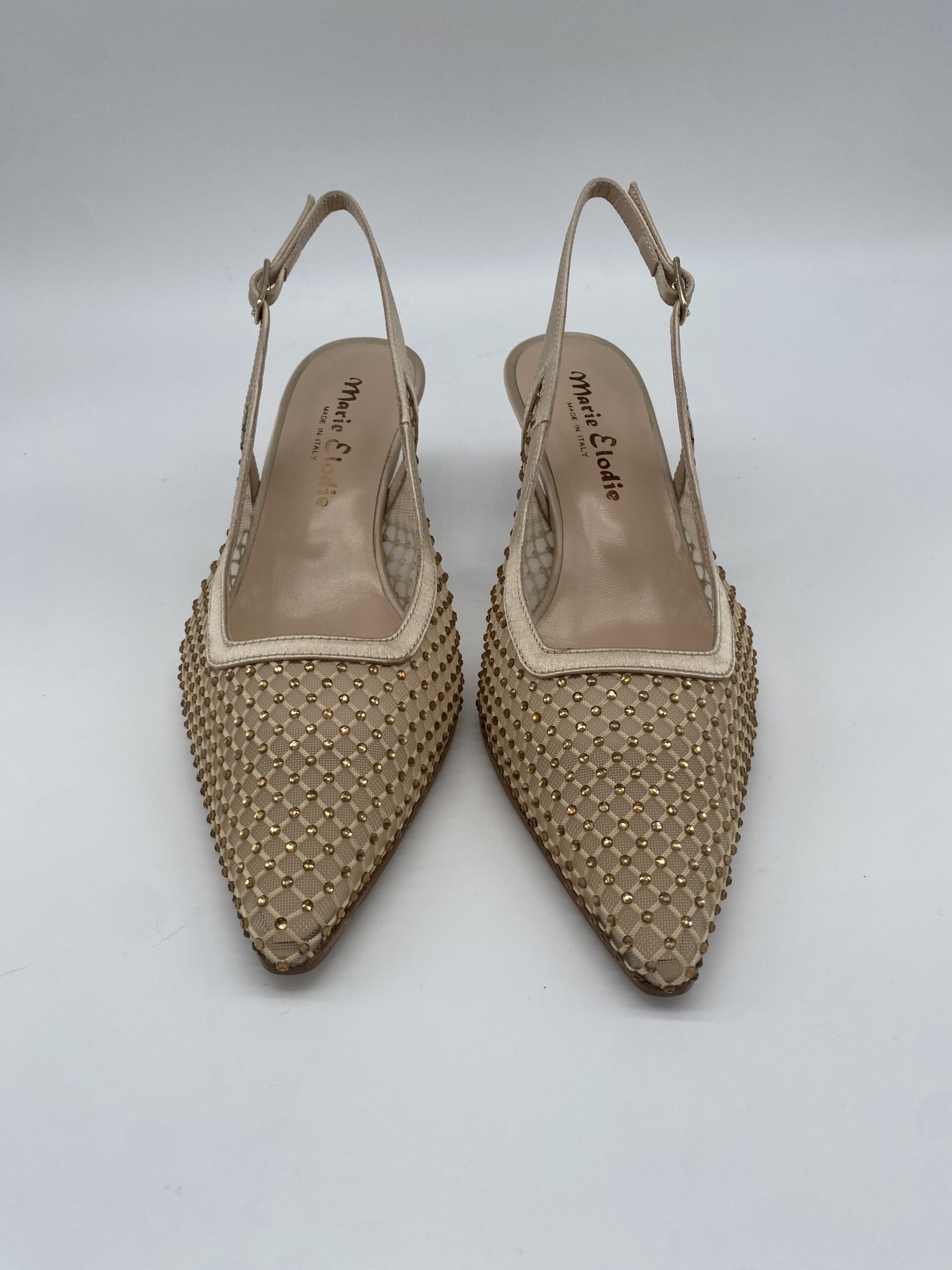 MARIE ELODIE- Chanel rete strass tacco 50 raso champagne