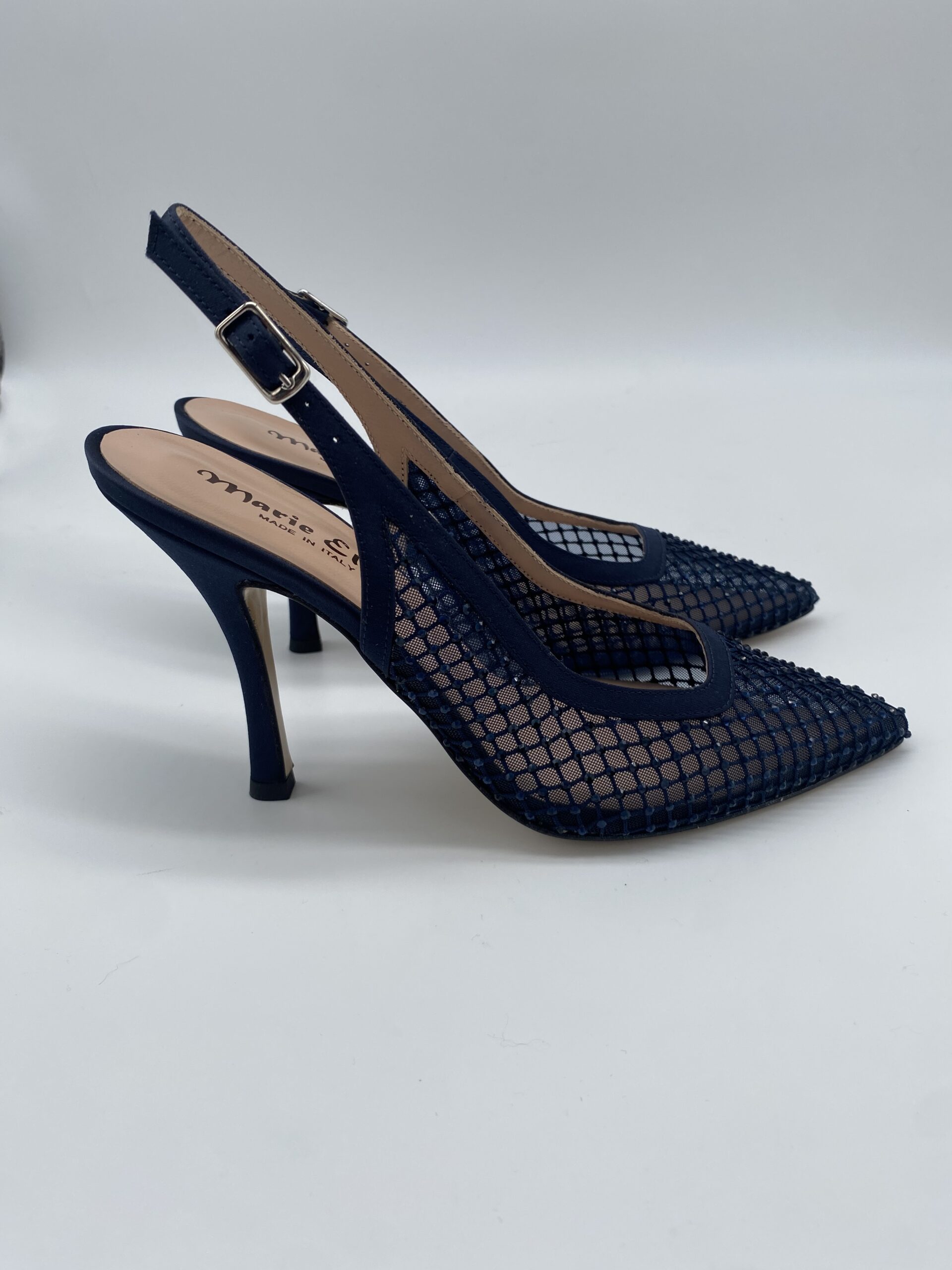 MARIE ELODIE- Chanel rete strass tacco 80 raso blu