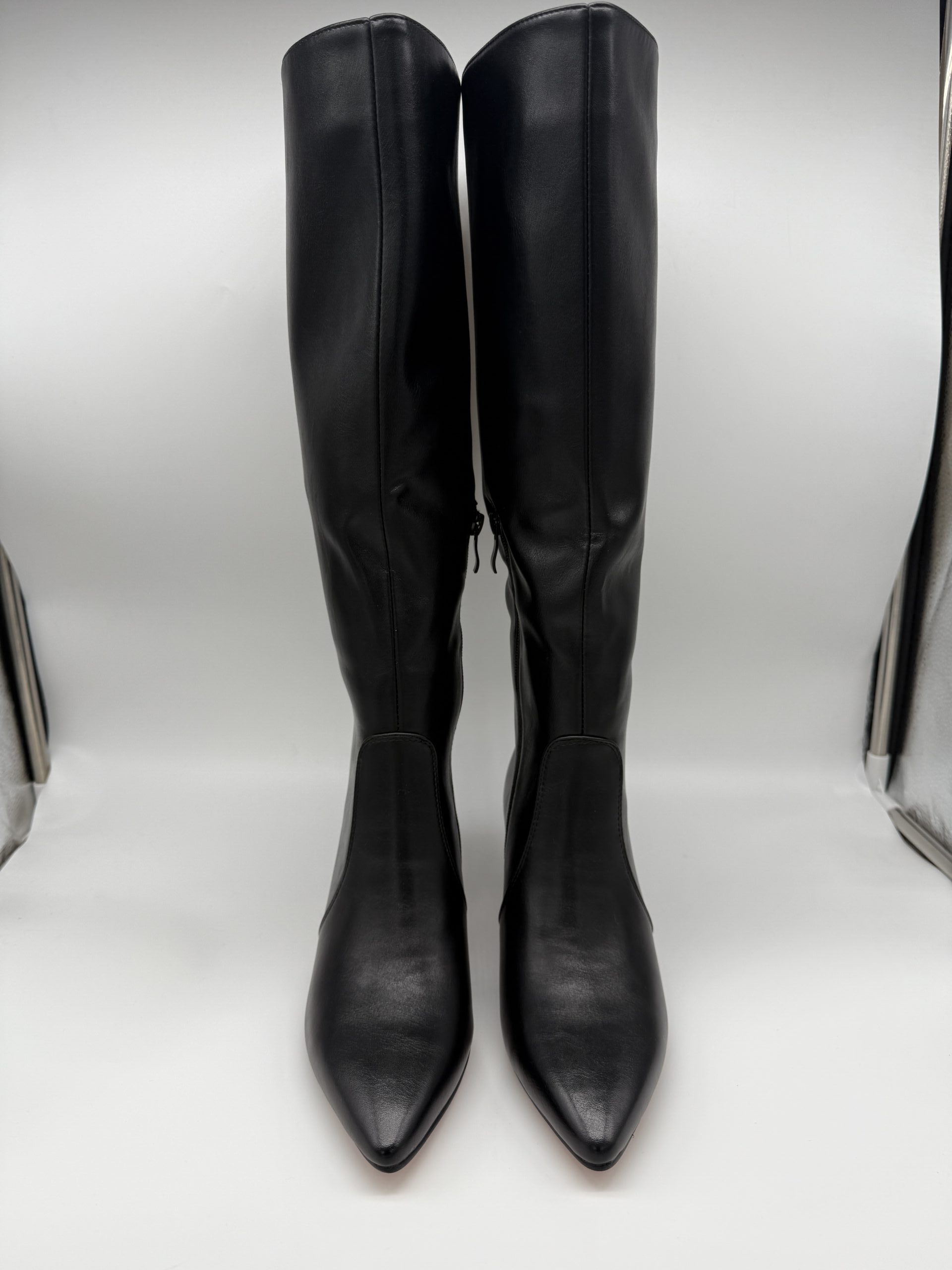 Stivale alto nero tacco 50. Stivale alto a punta realizzato in misto pelle nero con cerniera laterale. Il tacco 50 ò rivestito